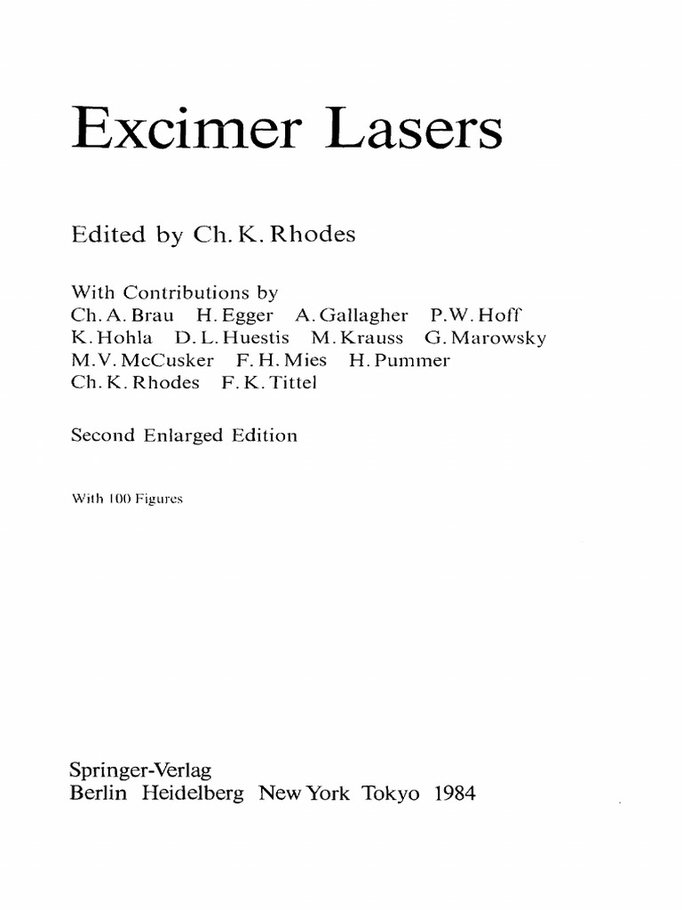 Excimer Lasers Edited By Ch K Rhodes Pdf Chemical Bond Molecules